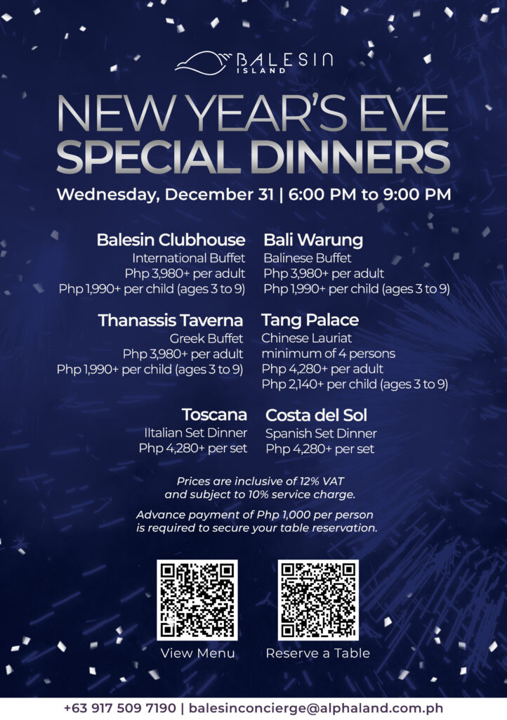 An advance payment of Php 1,000 per person is required to secure your table reservation.
